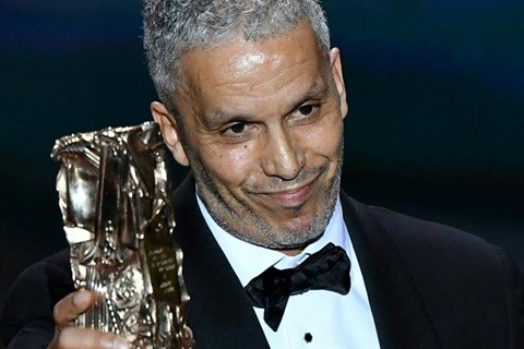 | L'acteur franco-tunisien Sami Bouajila reçoit son César du meilleur acteur, le 12 mars 2021 lors de la cérémonie des César à Paris |