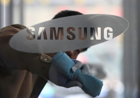 | Photo du logo du géant sud-coréen Samsung qui enregistre un bénéfice net trimestriel en hausse de plus de 50. |