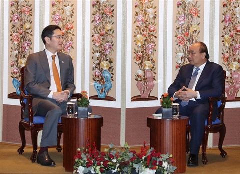 Le Premier ministre vietnamien Nguyên Xuân Phuc a reçu, le 28 novembre à Séoul, le vice-président du groupe Samsung, Lee Jae-yong, dans le cadre de sa visite officielle en République de Corée. Il a hautement apprécié les activités d’investissement du groupe Samsung au Vietnam en précisant que le gouvernement, les ministères, les secteurs et les localités vietnamiens favorisaient au maximum les projets d’investissement de ce groupe.