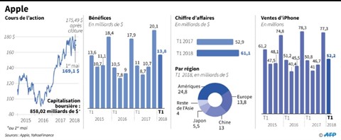 | Cours des actions Apple, bénéfices trimestriels, chiffre d'affaires et ventes d'iPhone. |