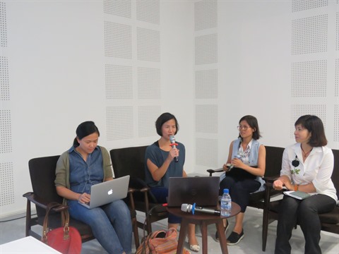 | Sandrine Llouquet (2e de gauche) lors d'une rencontre avec les spectateurs à Hanoï. |