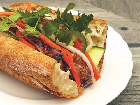 Découper deux morceaux de baguette de pain de 7 pouces environ. Tailler ensuite chacun des morceaux sur la longueur. Garnir les deux côtés de la baguette de la sauce préparée. Ajouter les morceaux de canard, la coriandre fraîche et une bonne poignée de salade de carottes et mangue.