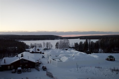| L'établissement Arctic Snow Hotel, le 17 décembre à Rovaniemi, en Laponie finlandaise. |
