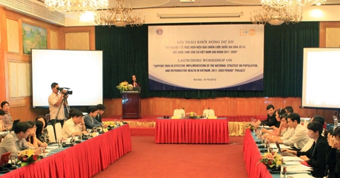 | Colloque sur le lancement du projet ''Assistance au ministère de la Santé dans la mise en œuvre de la stratégie nationale sur la démographie et la santé génésique au Vietnam, période 2011-2020", le 31 octobre à Hanoi. |
