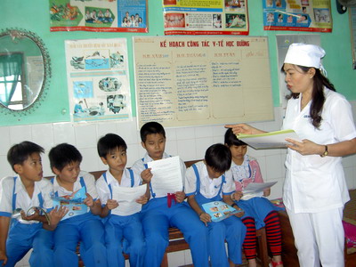 En zone montagneuse, la plupart de ce personnel occupe en même temps deux postes. Dans de grandes villes comme Hanoi, le taux de personnel de la santé ayant un deuxième emploi est de 10% seulement. Il manque par ailleurs 300 agents sanitaires scolaires à Hanoi. A Hô Chi Minh-Ville, seulement 52% des écoles disposent d’un tel personnel, et 30% seulement répondent aux normes de formation.