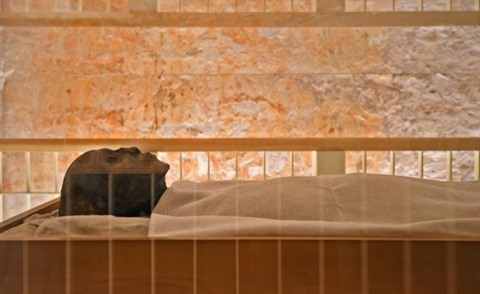 | Photo prise le 31 janvier 2019 de la momie du pharaon de Toutankhamon dans sa tombe dans la Vallée des rois, en Égypte. |