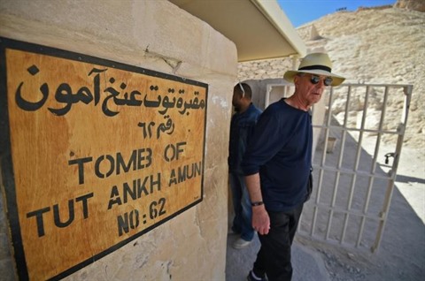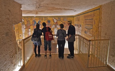 | Des touristes admirent la tombe du pharaon Toutankhamon dans la Vallée des rois, en Égypte, le 31 janvier 2019. |