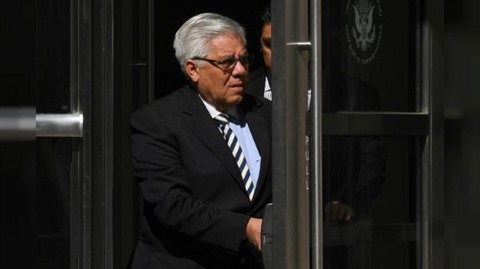 | Hector Trujillo, ex-responsable de la Fédération guatémaltèque de football, quitte le tribunal fédéral de Brooklyn, le 2 juin à New York. |