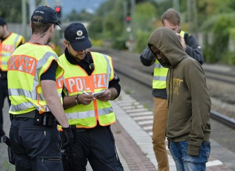 | La police allemande interpelle un jeune Erythréen qui tentait de franchir la frontière germano-autrichienne caché sous un train, le 24 août à Raubling, dans le Sud de l'Allemagne. |