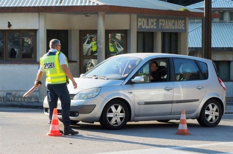 La police française contrôle un véhicule au poste-frontière franco-espagnol de Le Perthus, dans le sud de la France, le 18 août. Photo : AFP/VNA/CVN |