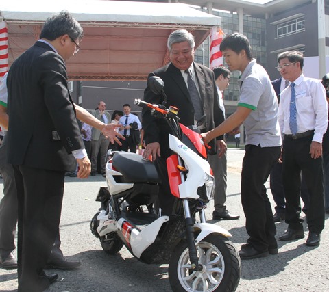 | Un scooter électrique est présent à l'Université de Viêt-Duc, province de Binh Duong (Sud). |
