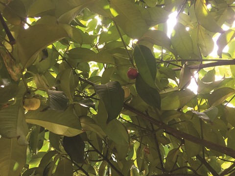 "Ce sont des mangoustans bio. Sans engrais, ils sont toujours abondants et beaux", explique cet homme de 55 ans, en cueillant un mangoustan qu’il tend ensuite à ses clients. M. Phuc guide les visiteurs en leur montrant les fruits mûrs et, parfois, il ramasse au sol des mangoustans. "Ils sont tombés à terre il y a peu de temps. Mais ils sont mangeables!", ajoute M. Phuc.