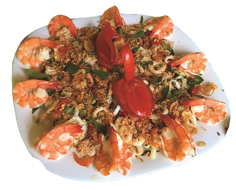 "Avez-vous déjà dégusté de la salade aux mangoustans? C’est une spécialité culinaire de notre verger!", propose M. Khuong, le fils du propriétaire. Par curiosité, les visiteurs commandent trois assiettes pour une dizaine de personnes. Après une vingtaine de minutes de préparation, tous passent à table dans un kiosque situé en plein cœur du verger. Le plat comprend crevettes, mangoustans, graines de sésame et tomates. Une fois repus, les visiteurs n’oublient pas d’acheter les mangoustans posés en évidence devant la maison du propriétaire.