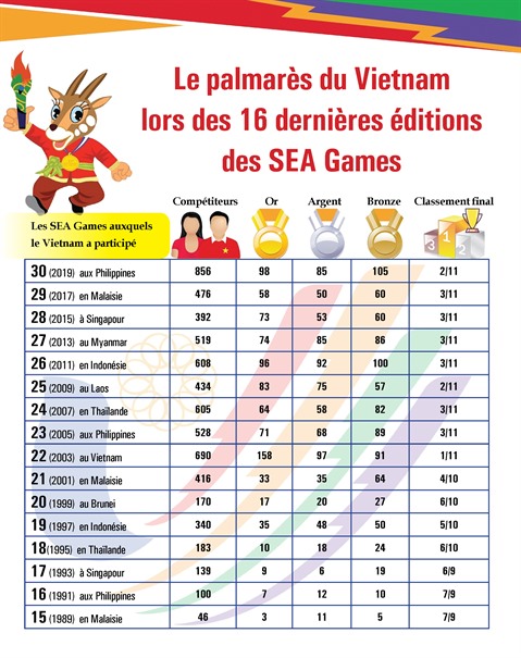 Dix-neuf ans plus tard, les SEA Games sont de retour dans notre pays qui affiche ses ambitions. "Le Vietnam organise ces SEA Games 31 dans un esprit de solidarité tout en apportant aux sportifs la sécurité et la quiétude nécessaires. Nous voulons faire de ces Jeux un moment d’unité entre nos nations, ce dont témoigne le slogan officiel de ces jeux : +Pour une Asie du Sud-Est plus forte+", a déclaré le Premier ministre Pham Minh Chinh.