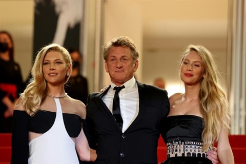 | L'actrice Katheryn Winnick (gauche), le ralisateur Sean Penn et l'actrice Dylan Penn à Cannes le 10 juillet. |