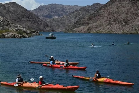 C'est le cas de certains cours d'eau situés en aval du barrage Hoover, comme à Willow Beach, dans l'Arizona voisin, où des kayakistes s'aspergent sous un soleil de plomb.