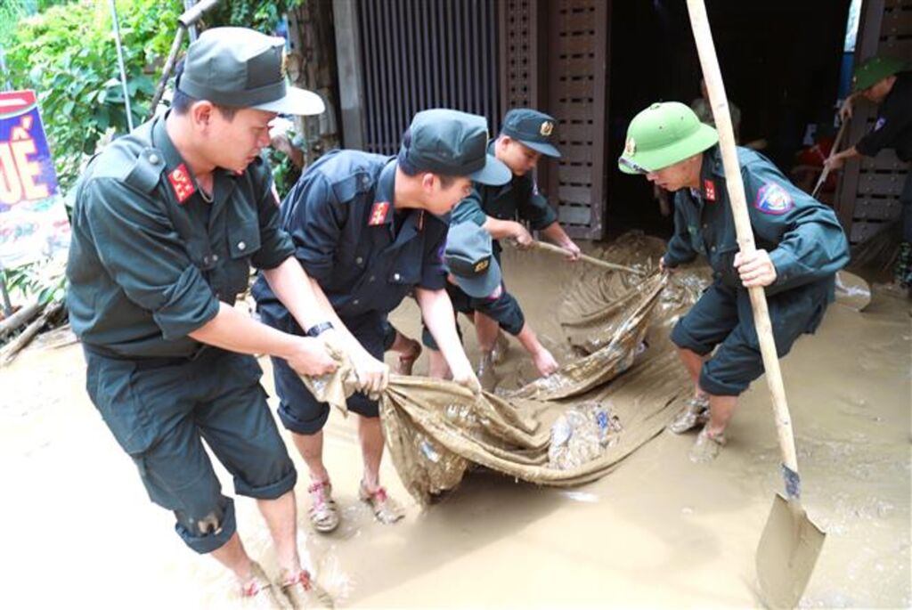 Le Département de sauvetage et de secours (relevant de l'État-major général) a envoyé une délégation dirigée par le colonel Trân Thê Hiên, directeur adjoint dudit département, en coopération avec l’État-major de la VIe Région militaire, les Forces de défense antiaérienne et aérienne, et le Corps 18. Ce dispositif a permis d’organiser six vols d’assistance humanitaire Environ 18 tonnes de vivres et de biens de première nécessité ont été transportées. Quatre vols supplémentaires sont prévus pour la journée du 25 juillet.