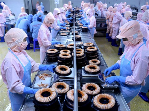 | La transformation des crevettes à exporter. |