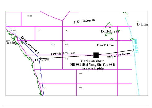 | La plate-forme de forage Haiyang 981 est implantée illégalement dans la zone économique exclusive et sur le plateau continental du Vietnam. Photo : VNA/CVN |