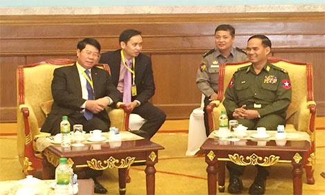 | Le vice-ministre vietnamien de la Police, Bùi Van Nam (gauche), et son homologue birman Aung Soe. |