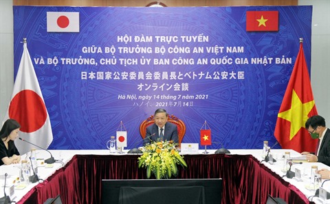 Le ministre de la Police, le général Tô Lâm, a eu le 14 juillet un entretien en ligne avec le ministre d'État et président de la Commission nationale de sécurité publique du Japon, Tanahashi Yasufumi.