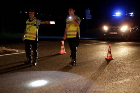 | Des membres des forces de l'ordre régulent le trafic routier, le 14 août à Sept-Sorts (Seine-et-Marne). |