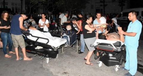 Ils ont reçu des soins dans le jardin de l'hôpital car le plafond de l'établissement a subi des dégâts lors du séisme et les autorités n'ont pas voulu prendre le risque d'admettre les blessés à l'intérieur, a indiqué le gouverneur de Bodrum Bekir Yilmaz, cité par le quotidien Hurriyet.