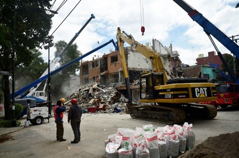 | Travaux de démolition d'immeubles endommagés pendant un séisme, le 19 septembre à Mexico. |