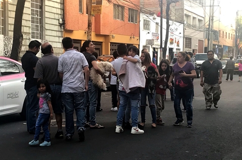 | Des Mexicains dans une rue après un séisme de magnitude 7,2 qui a secoué le 16 février puissant séisme secoue Mexico. |