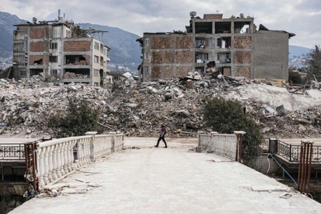 | Un homme marche dans la ville turque d'Antakya dévastée par le séisme meurtrier du 6 février, le 19 février. |