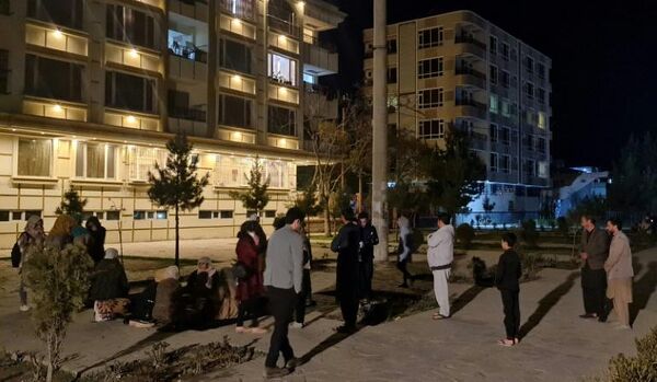 | Des habitants de Kaboul sortent de chez eux après avoir ressenti les secousses d'un fort tremblement de terre, le 21 mars. |