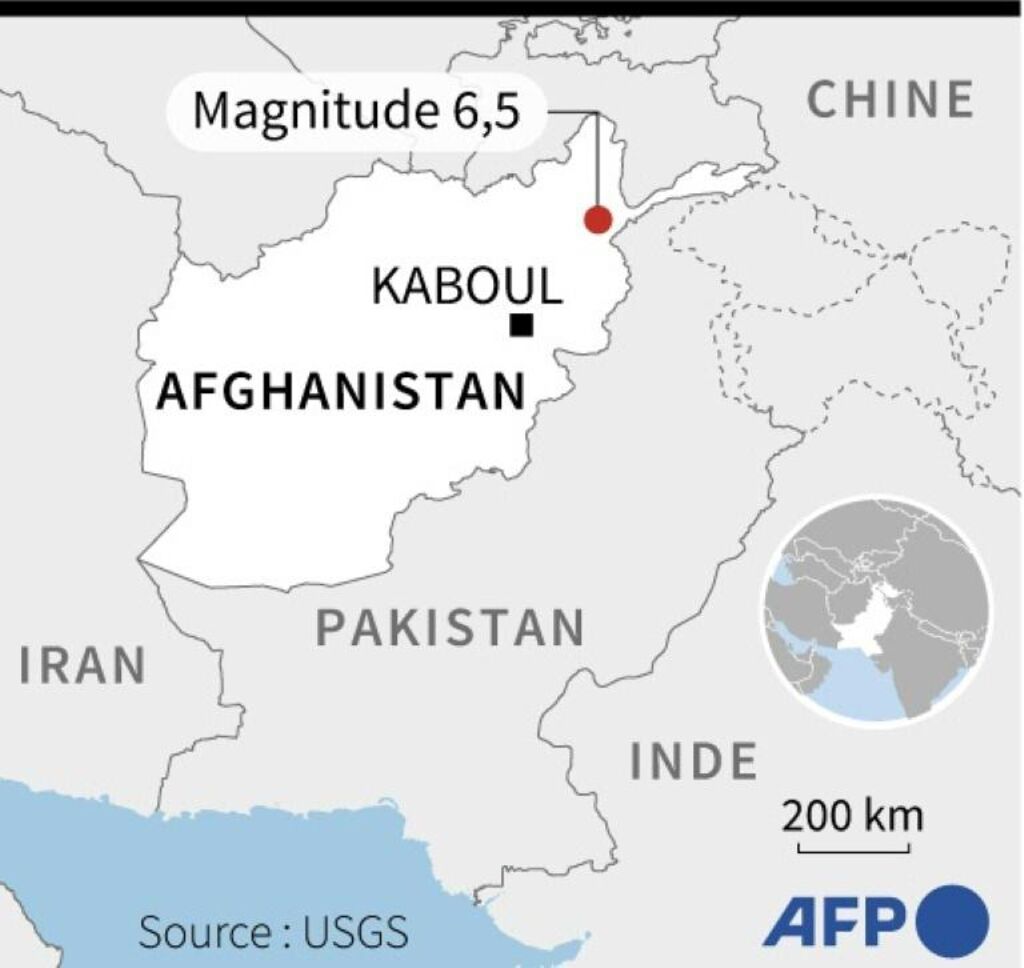 L'épicentre du séisme, de magnitude 6.5, a été localisé dans le Nord-Est de l'Afghanistan près de la ville de Jorm, à la frontière avec le Pakistan et le Tadjikistan, et à une profondeur de 187 km, selon l'institut sismologique américain USGS.