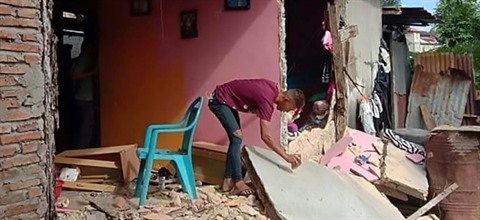 | Un habitant de Ambon en Indonésie inspecte sa maison dévastée par un séisme, le 26 septembre. |