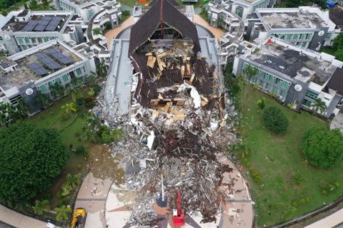 | Les bureaux du gouverneur détruit par le séisme sur l'île de Célèbes en Indonésie, le 17 janvier. |