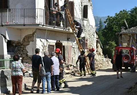 | Les pompiers aident les habitants à récupérer des effets personnels, le 28 août à Rio près d'Amatrice, en Italie. |