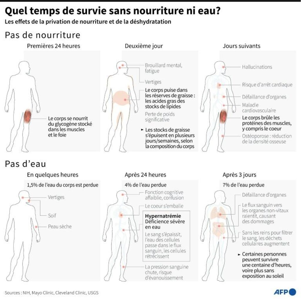 | Graphique montrant les stades successifs de la déshydratation et de la privation de la nourriture. |