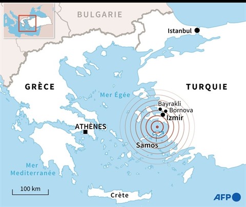 Le séisme s’est produit vendredi après-midi 30 octobre das une zone régulièrement secouée de la mer Egée, au sud-ouest d’Izmir, troisième plus grande ville de Turquie, et près de l’île grecque de Samos.