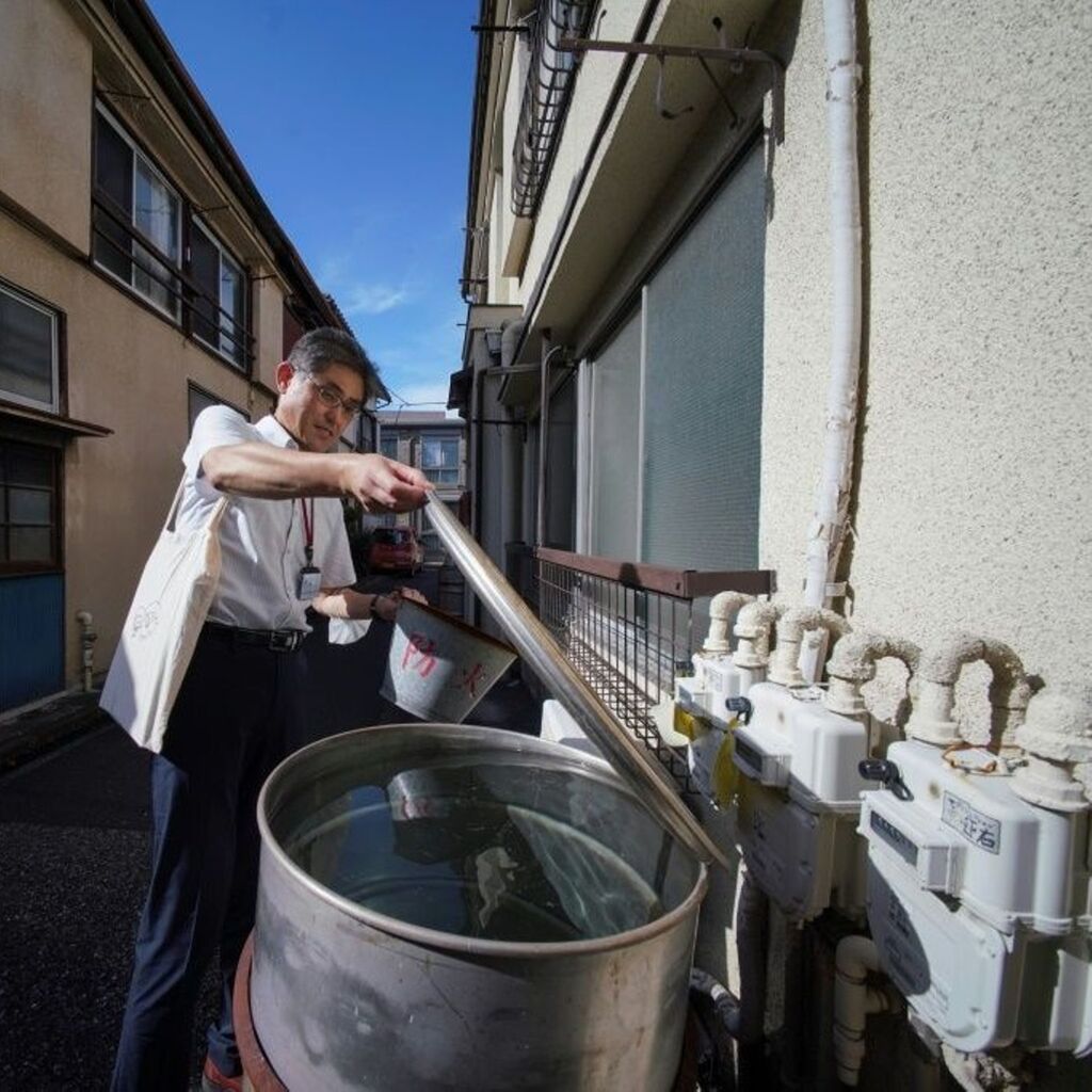 | Une citerne anti-incendie remplie d’eau de pluie dans une ruelle de l’arrondissement d’Arakawa, dans le nord-est de Tokyo. |