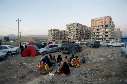 | Des Iraniens se réchauffent près d'un feu à Sar-e Pol-e Zahab le 13 novembre après un séisme qui a fait plus de 400 morts en Iran et en Irak. |