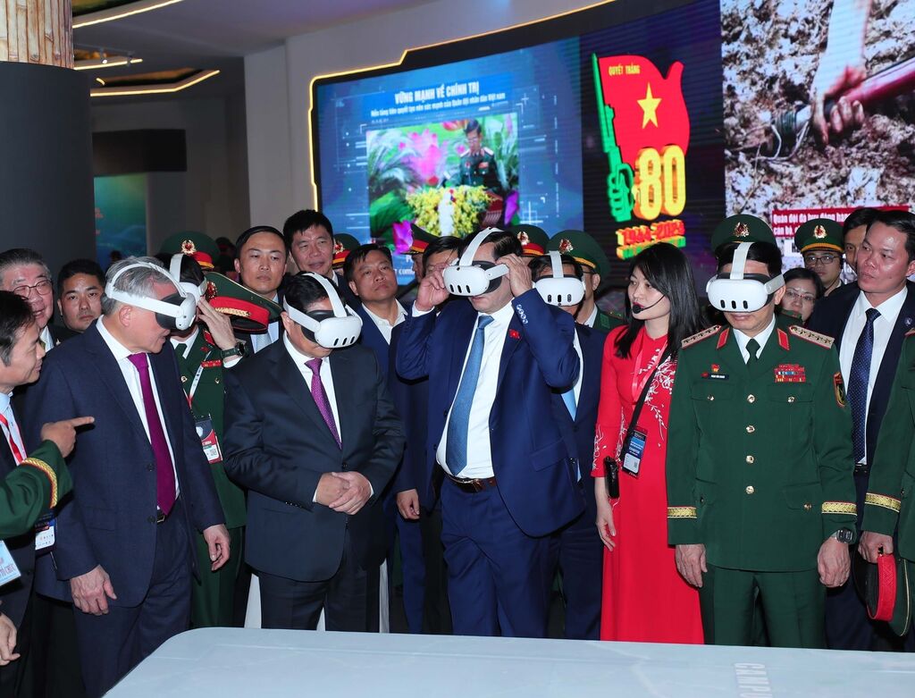 | Le Premier ministre Pham Minh Chinh (1er plan, 3e à droite) visite la zone d'exposition des produits de défense de Viettel, à Hanoï, le 19 décembre. |