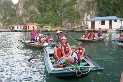 | Des touristes étrangers dans la baie de Ha Long, province de Quang Ninh (Nord). |