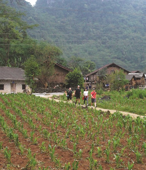 | Touristes étrangers visitant un homestay dans le district de Trùng Khanh, province montagneuse de Cao Bang (Nord) |