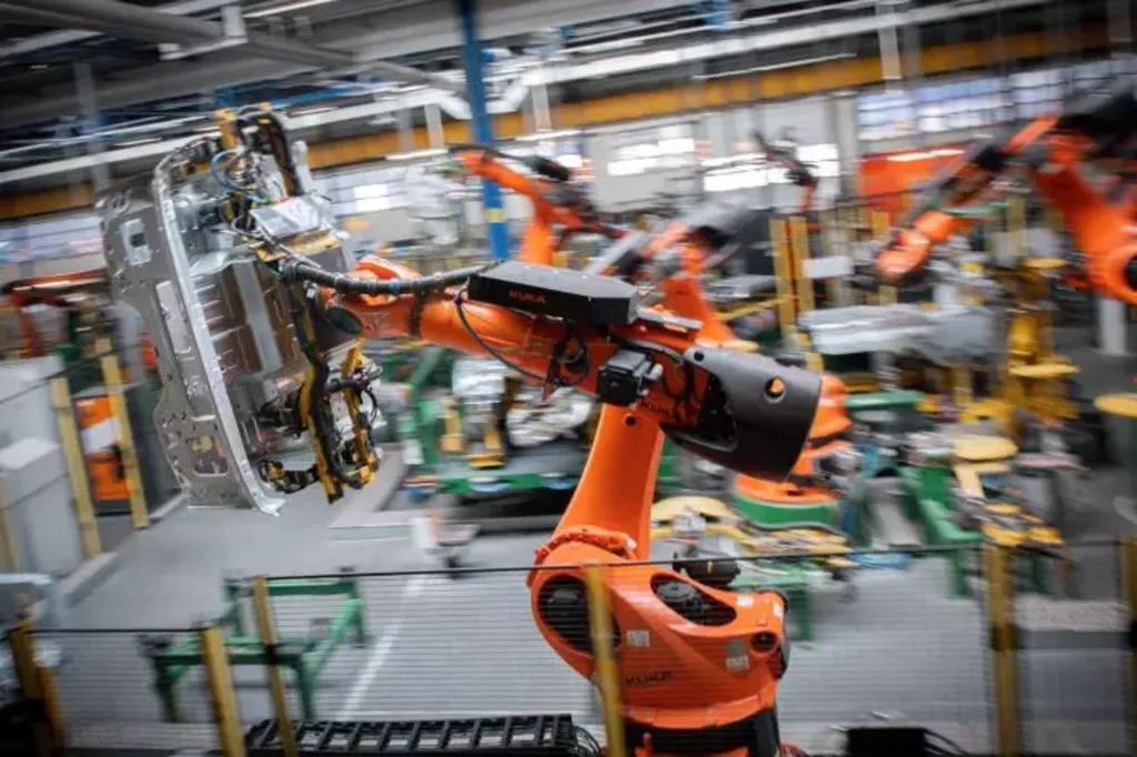 | Un robot automatisé dans l'usine Renault de Blainville-sur-Orne, à Colombelles, près de Caen, le 30 août 2023. |