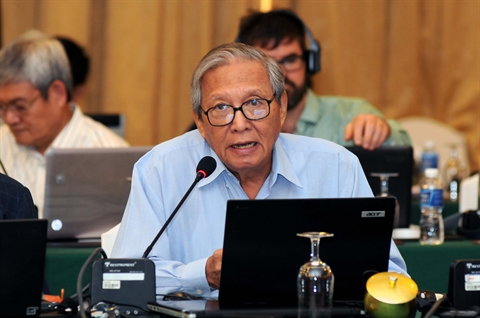 | Le professeur et docteur Nguyên Ngoc Trân présente son intervention lors du séminaire. |
