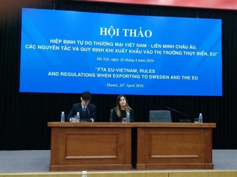 | Séminaire sur la promotion des exportations en Suède et l'UE, le 26 avril à Hanoi. |