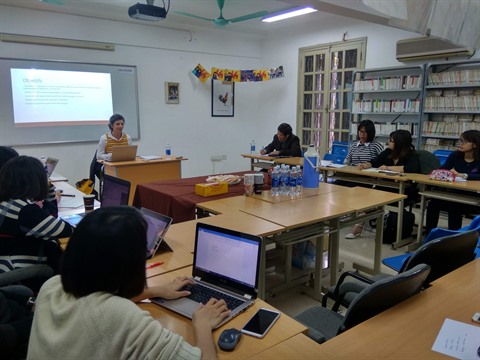 Une dizaine d’enseignants et d’étudiants de Hanoï se regroupent du 10 au 14 décembre à l’Université de Hanoï pour participer au séminaire sur l’écriture scientifique. Ce dernier est animé par Anne-Sophie Calinon, maîtresse de conférences en sciences du langage de l’Université de Franche-Comté (France).