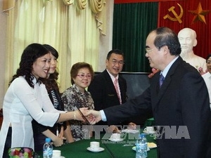 | Le vice-Premier ministre Nguyên Thiên Nhân (droite) lors d'une rencontre avec des enseignants Viêt kiêu début octobre 2013. |