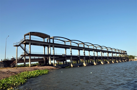 | Un ouvrage hydraulique dans le delta du Mékong. |