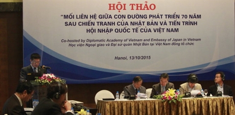 | Séminaire "Liens entre le développement du Japon depuis la fin de la Seconde Guerre mondiale il y a 70 ans et le processus d’intégration internationale du Vietnam", le 13 octobre à Hanoi. |