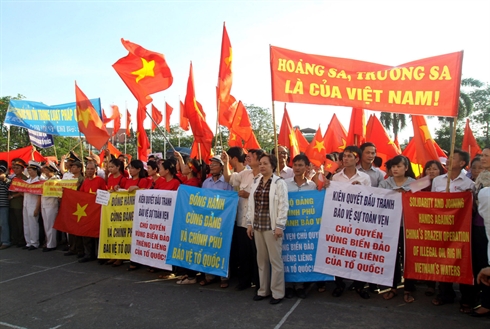 | Protestation contre l’implantation illégale par la Chine de la plate-forme de forage Haiyang Shiyou-981 dans la zone économique exclusive du Vietnam, le 14 mai à Hai Phong. |